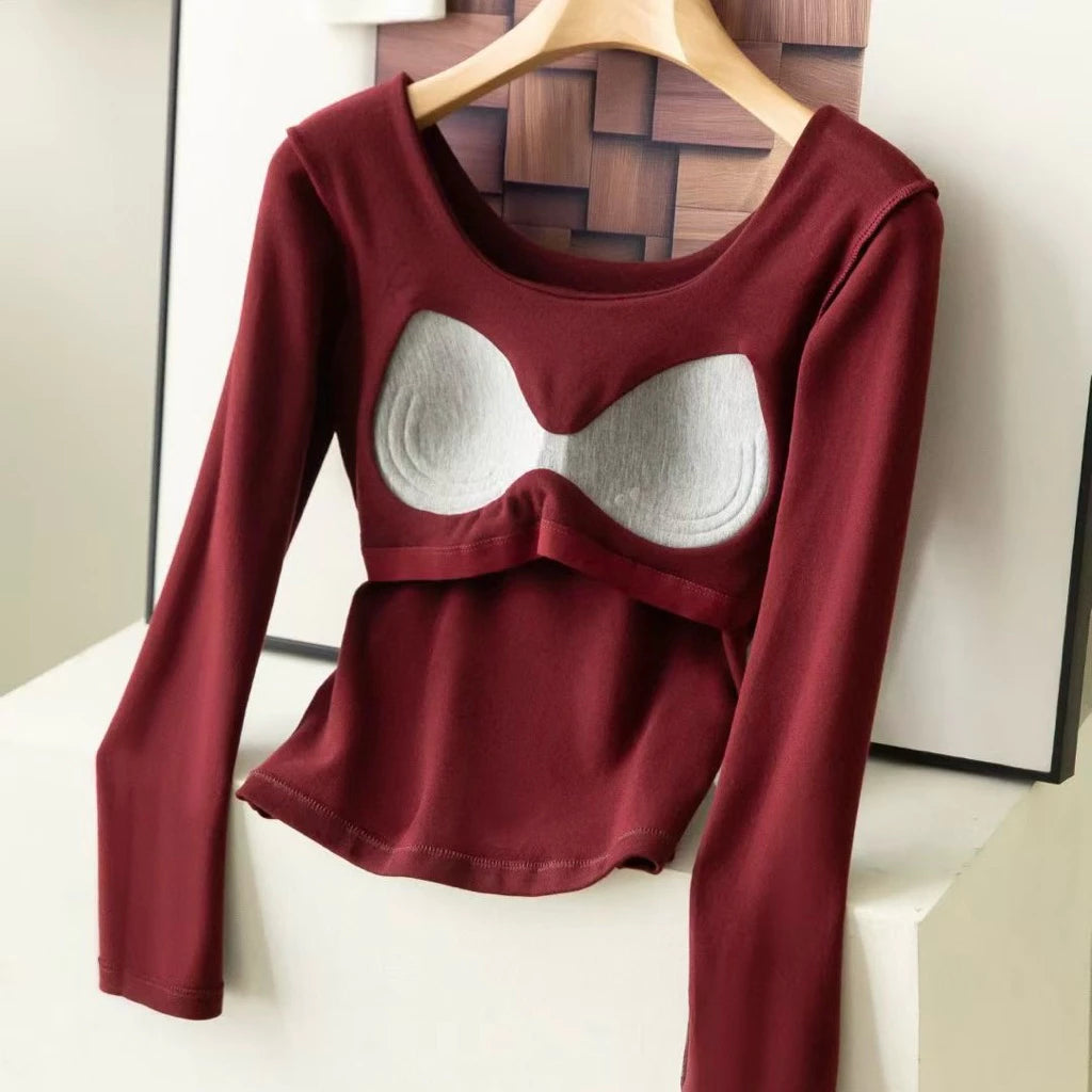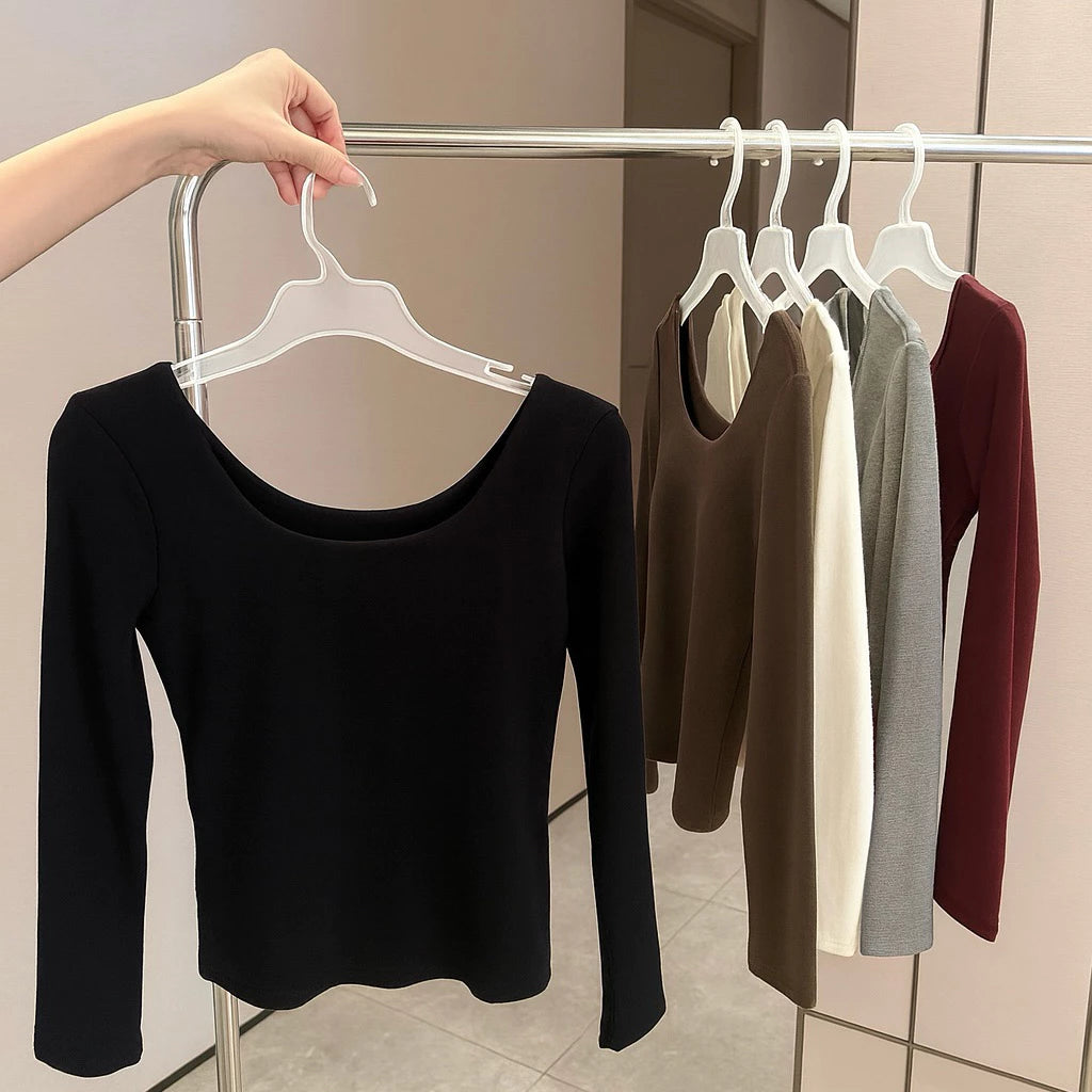 Cozy 圓領磨毛舒適彈性固定杯保暖上衣 長袖上衣 長版上衣 女裝上衣