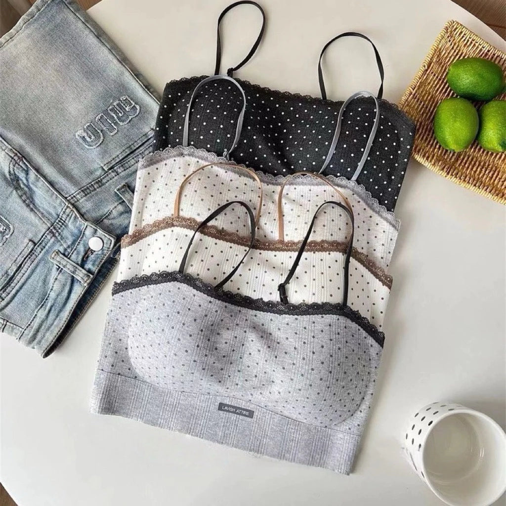 Cozy 甜美蕾絲波點棉質固定杯bratop小可愛 女裝上衣